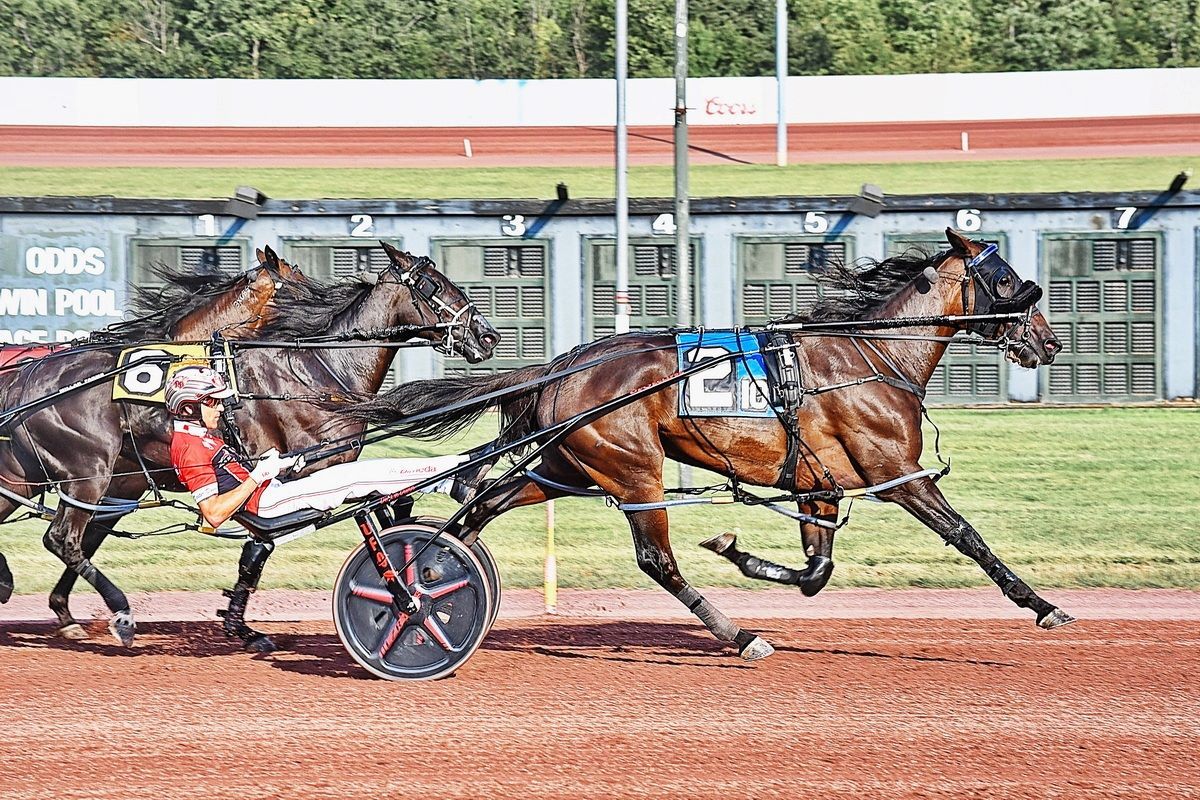 Onajetplane ($3.60) turned in a stout two-move effort to defeat Go Ahead Makemyday by 2-3/4 lengths for a 1:52.4 win — his fourth of the season — in the male division. Niko Kärnä drove the Walner-Noble Lover colt for trainer Noel Daley, who shares ownership with Sjoblom Racing, LA Express Stable and Zei Zei Racing.